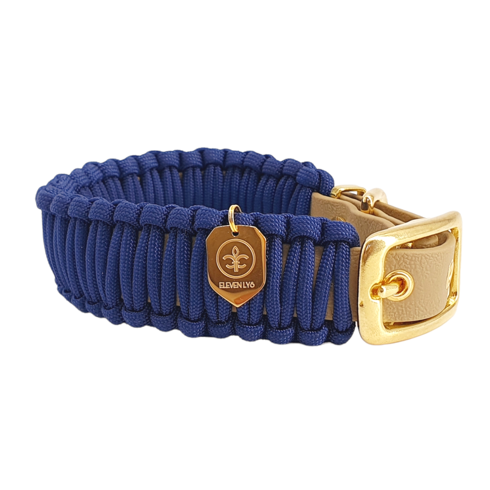 Wenn Du Dich für unser Biothane-Modell RIBBED LYS entscheidest, erhältst Du diese tolle Kombination aus Biothane in einem SANDTON und Paracord in dem eleganten BLAU.